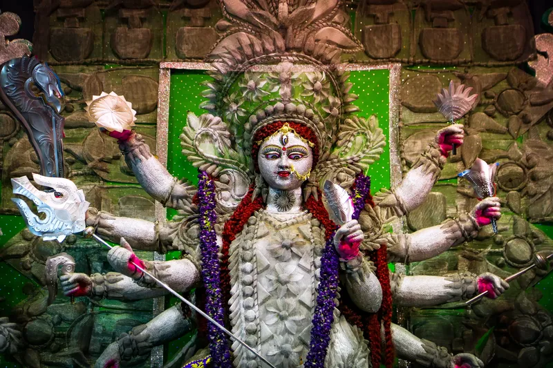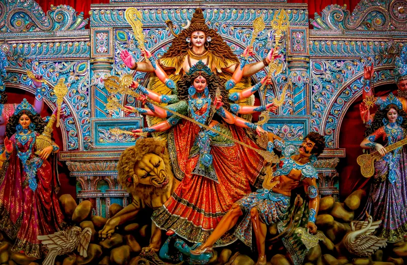 Durga Puja celebrates the victory of Goddess Durga over Mahishasura, symbolizing the triumph of good over evil and the restoration of cosmic balance. Observed across India, the festival blends devotion with artistry, where intricately crafted idols, rhythmic chants, and community gatherings transform everyday spaces into temporary realms of worship. Homes and public pandals become centers of prayer, reflection, and celebration, carrying an atmosphere that moves between reverence and festivity over several days.