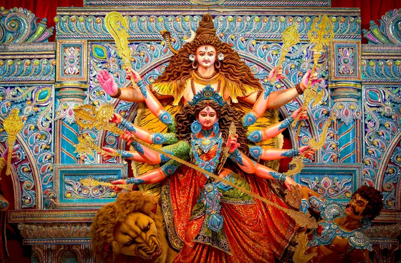 Durga Puja celebrates the victory of Goddess Durga over Mahishasura, symbolizing the triumph of good over evil and the restoration of cosmic balance. Observed across India, the festival blends devotion with artistry, where intricately crafted idols, rhythmic chants, and community gatherings transform everyday spaces into temporary realms of worship. Homes and public pandals become centers of prayer, reflection, and celebration, carrying an atmosphere that moves between reverence and festivity over several days.