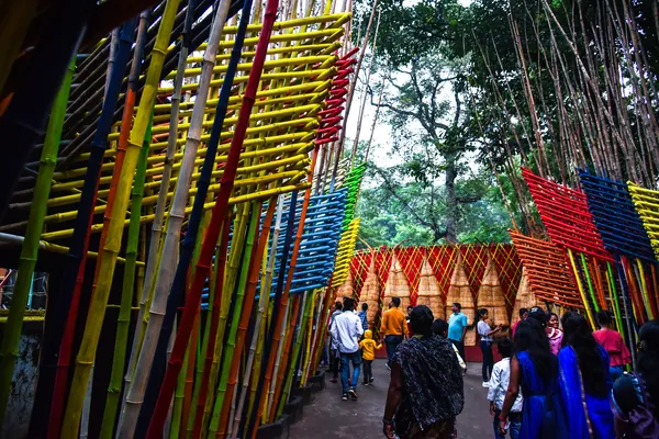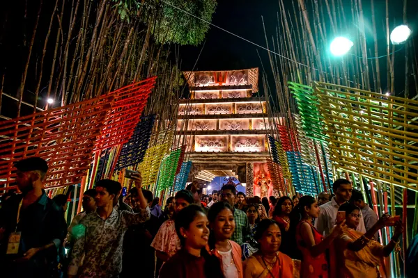 In eastern India, especially in West Bengal and Jharkhand, Durga Puja takes on a distinct cultural form—less a ritual, more a living spectacle of art, identity, and collective expression. Entire neighborhoods create elaborate themed pandals, often reflecting social narratives, history, or imagination, turning the festival into an open-air gallery. The sound of dhak drums, the glow of night-long lighting, and the flowing crowds create a continuous rhythm, where devotion merges with creativity, and the boundary between observer and participant dissolves into shared experience.